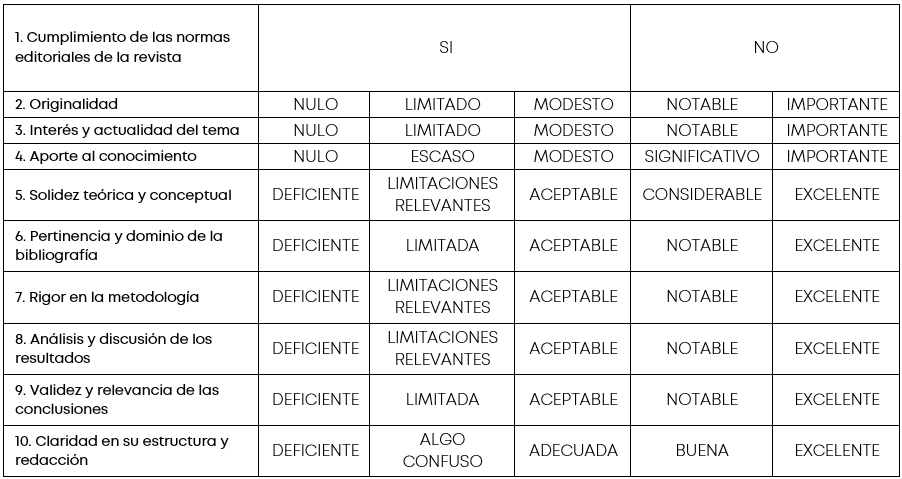 El formato de dictamen que siguen los dictaminadores para evaluar los artículos de la revista Gobierno y Gestión Pública incluye los siguientes elementos: