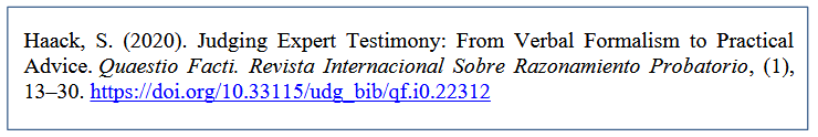 La bibliografía debe seguir las pautas de la Guía de citado del Instituto de Investigación de la USMP antes mencionado. Si las referencias bibliográficas disponen de DOI (Digital Object